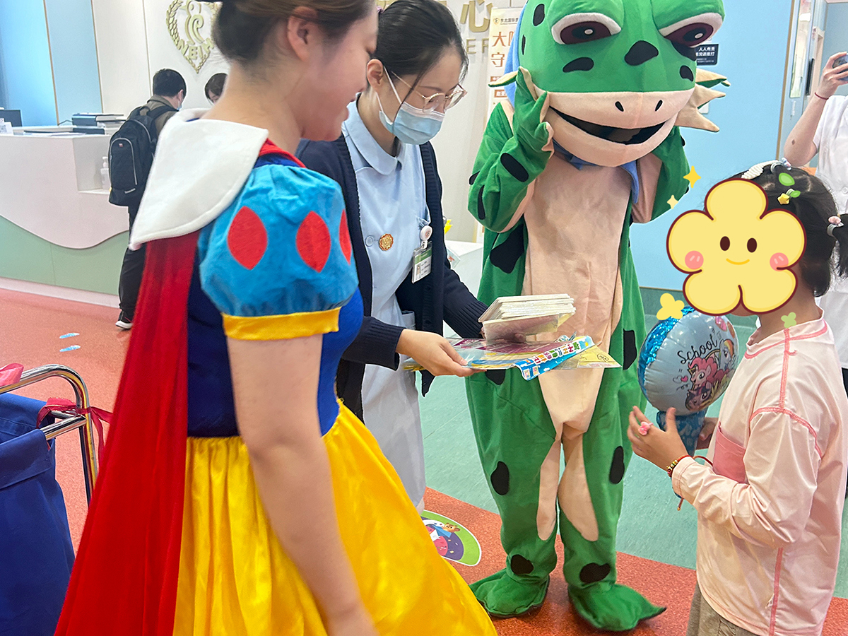 医护人员装扮成“白雪公主”和“小青蛙”看望住院患儿并赠送小礼物