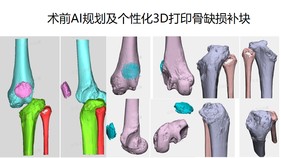 本例手术的亮点在于术前采用了AI智能规划系统,结合患者影像学数据,精准模拟手术方案,为术中操作提供了科学依据。同时,针对患者严重的骨缺损问题,团队利用3D打印技术为其量身定制了个性化骨缺损补块,确保了假体的稳定性和术后关节功能的恢复。这种将AI规划与3D打印技术相结合的治疗方式,标志着我院骨科在复杂关节置换领域迈入了精准化、个性化的新时代。