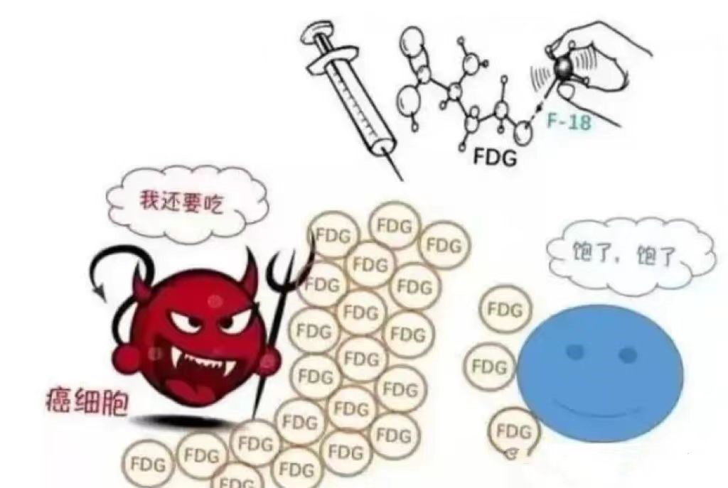 受检者静脉注射18F标记的脱氧葡萄糖,和正常葡萄糖一样参与体内细胞代谢:18F衰变后变成无放射性的氧;氧在体内与氢结合生成水,排出体外;与一氧化碳结合变成二氧化碳呼出体外,所以不必担心过敏的问题,是一种安全的检查方法。