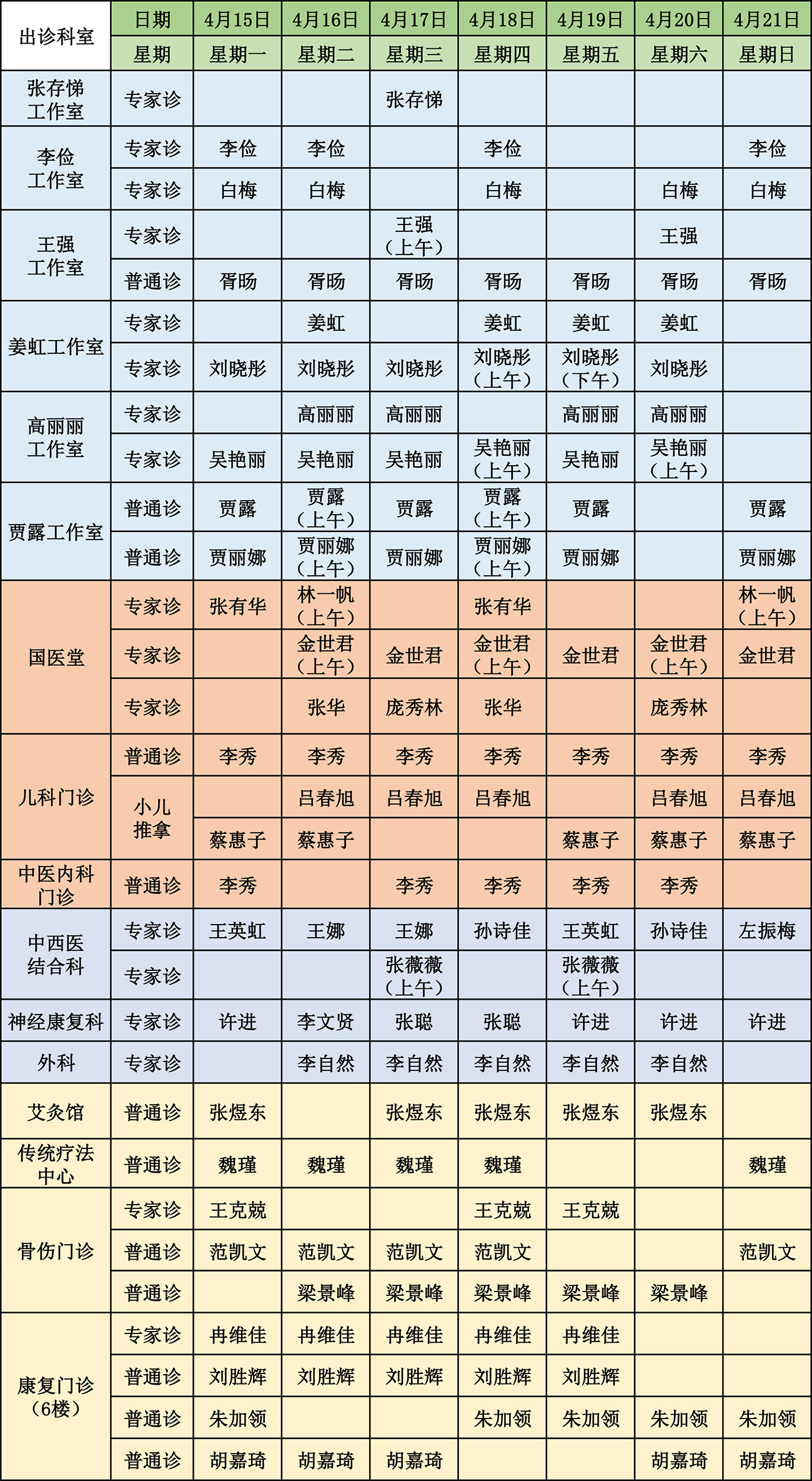 出诊信息|东北国际医院中医医院4月15日-4月21日出诊安排