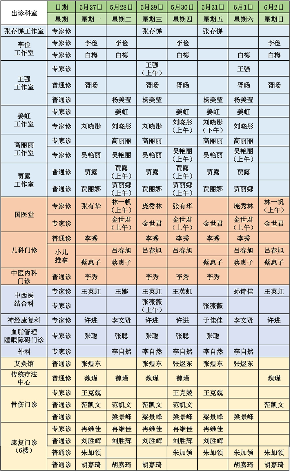 出诊信息|东北国际医院中医医院5月27日-6月2日出诊安排