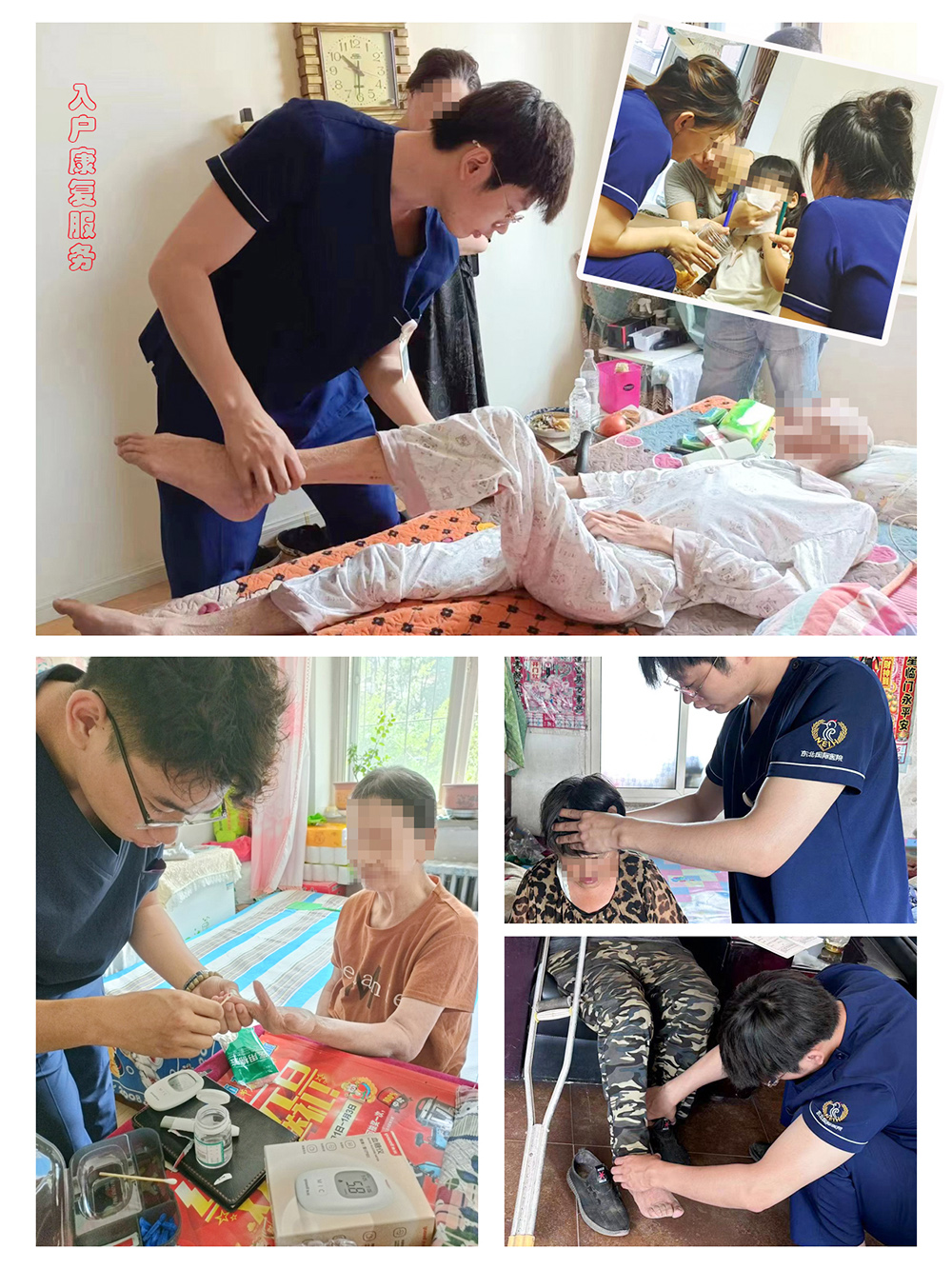 为了“私人定制”的美好方案能够得到良好的施行,东北国际医院入户康复团队成员特别注重服务细节:入户服装必定整洁规范、携带仪器必定消毒彻底、康复环节必定细致入微……将“合体还要合心”的理念融入到入户服务过程中,赋予“私人定制”的康复工作以“情感的温度”,帮助残疾人家庭树立康复的意识、坚定康复的意志、达到满意的康复。