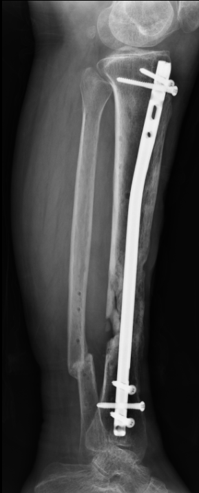 2022年2月,一场突发的车祸让乐观开朗的于阿姨陷入困境。当地医院诊断为胫骨开放性粉碎性骨折,伤情严重,虽然当地医院及时救治小腿得以保肢,但由于骨折粉碎、局部血运破坏,骨折一直未能愈合,让她的生活步履维艰。坚强的她带着骨折外固定架,拄拐生活长达14个月,生活的不便利、给家人增添麻烦致使笑容也逐渐从她的脸上消失。