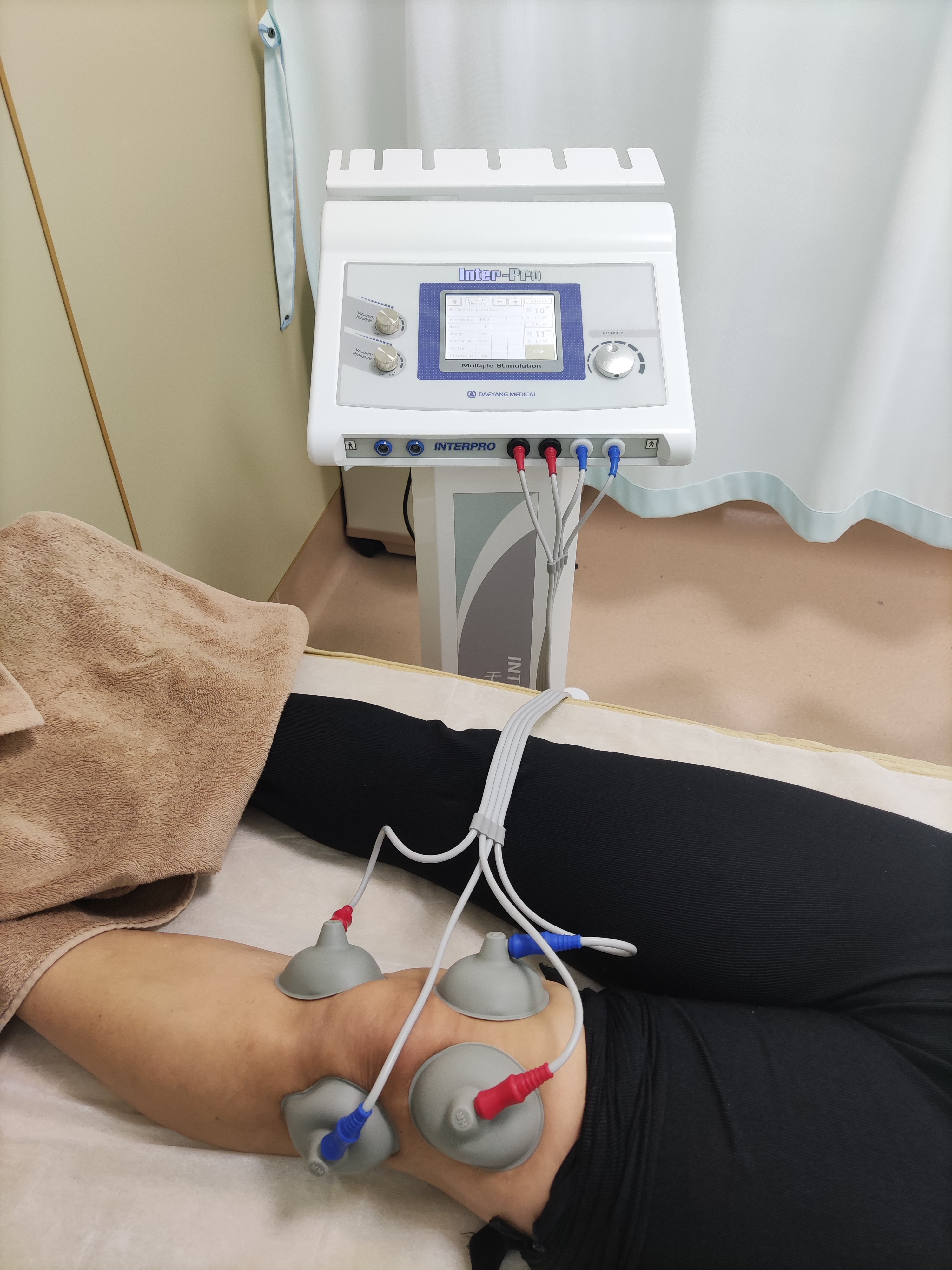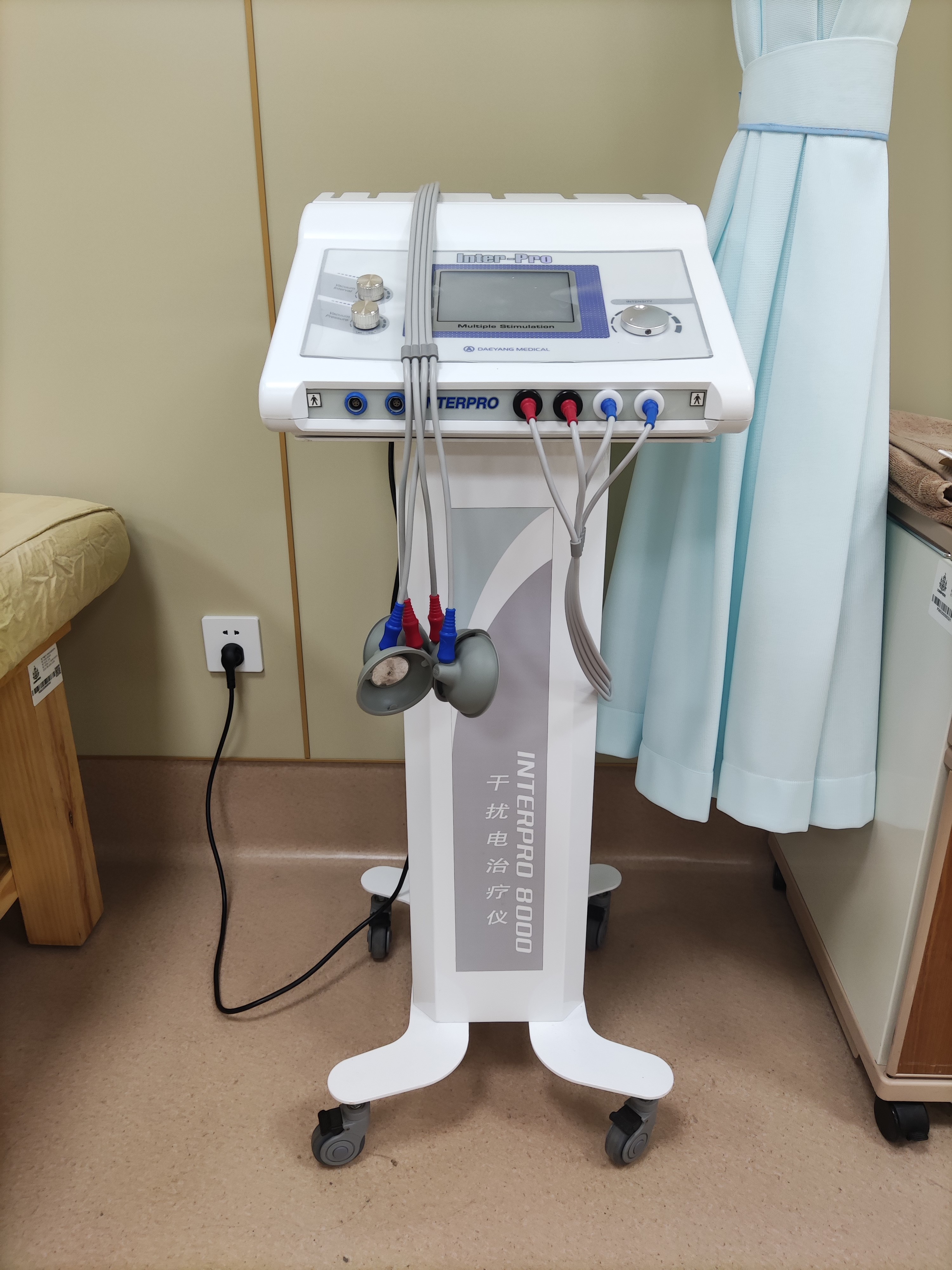 干扰电疗法其原理就是运用两组不同频率的中频电流,围绕着痛点来相互干扰,交叉进入人体,作用深、范围大,这样就能达到治疗疼痛啦!