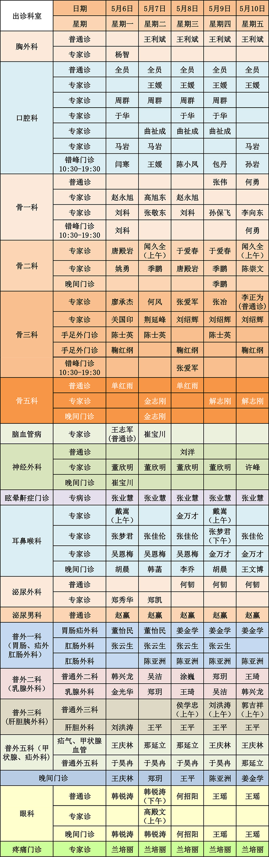 出诊信息|东北国际医院5月6日-5月10日出诊安排