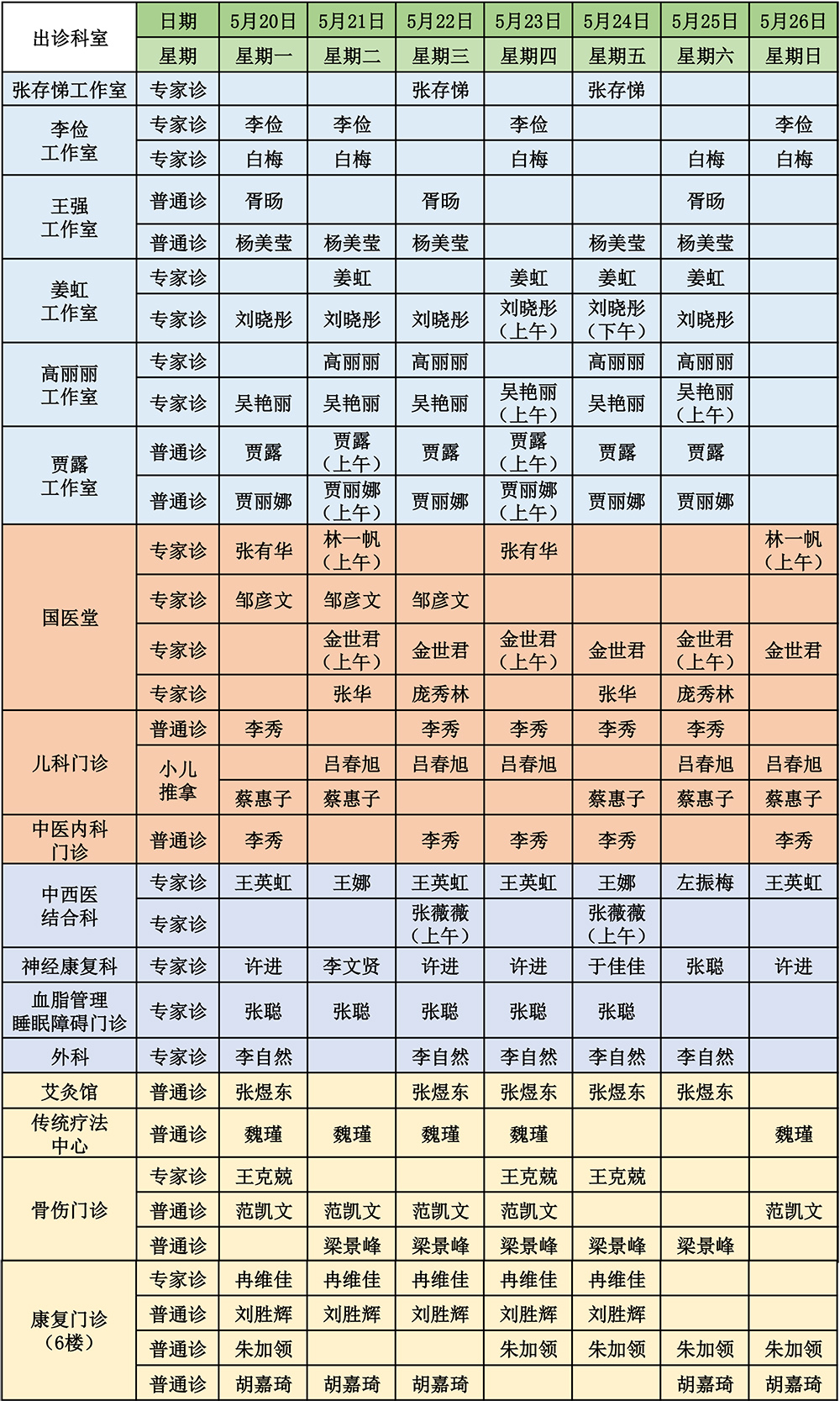 出诊信息|东北国际医院中医医院5月20日-5月26日出诊安排