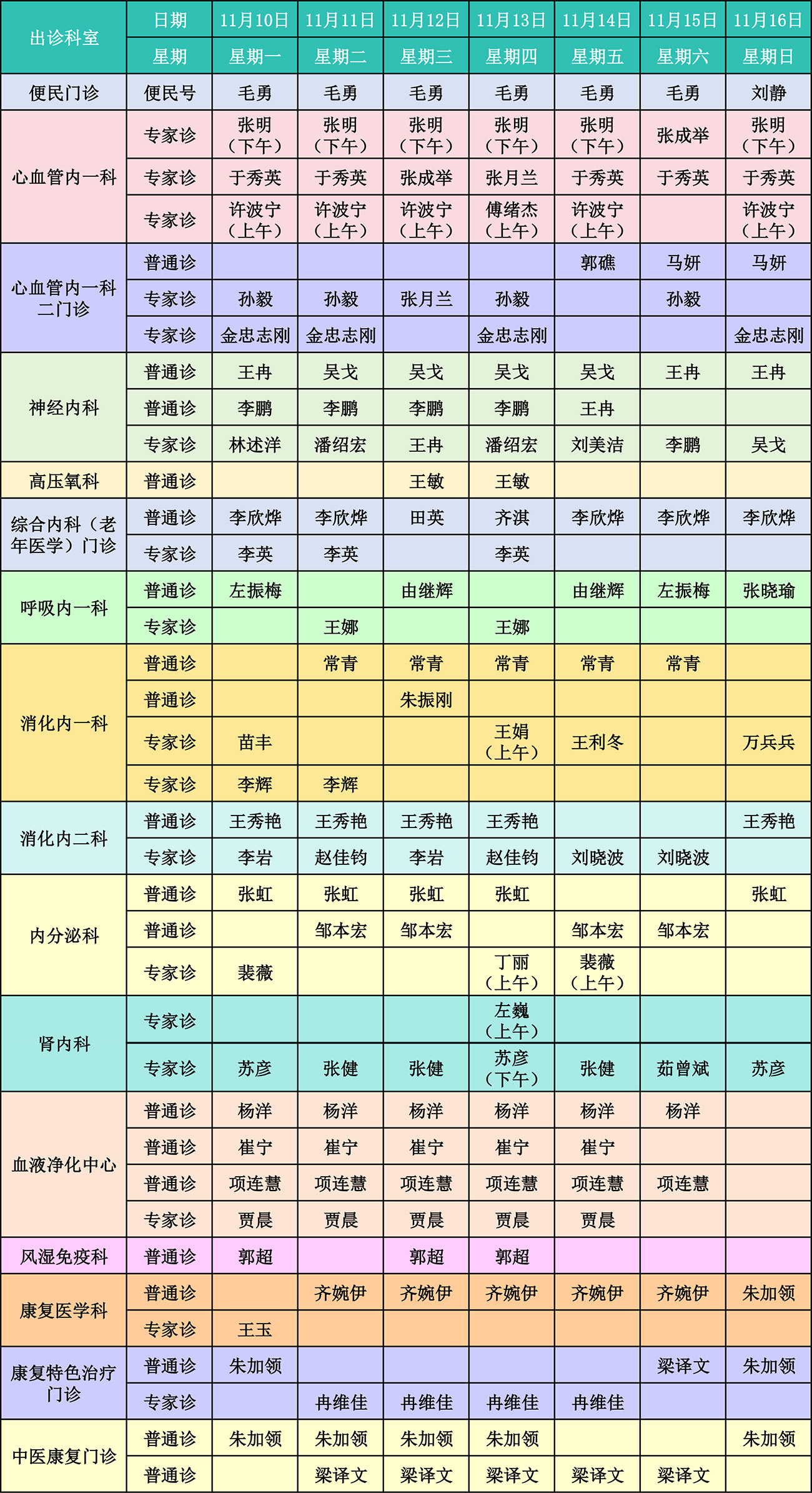 出诊安排|东北国际厚德医院11月10日-11月16日出诊安排